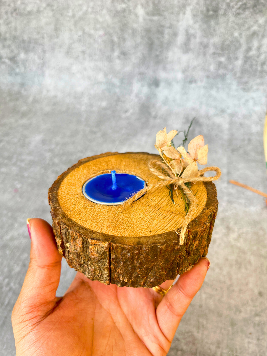 Keywords: Wooden Tealight Holder, Christmas Candle Holder, Rustic Decor, Stocking Stuffer, Dried Flower Decor, Bark Candle Holder.