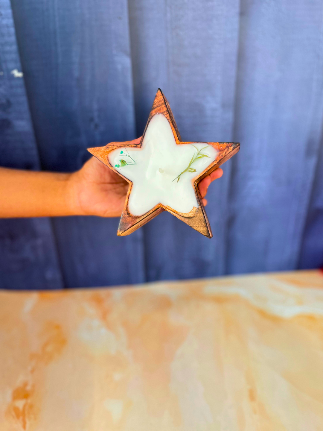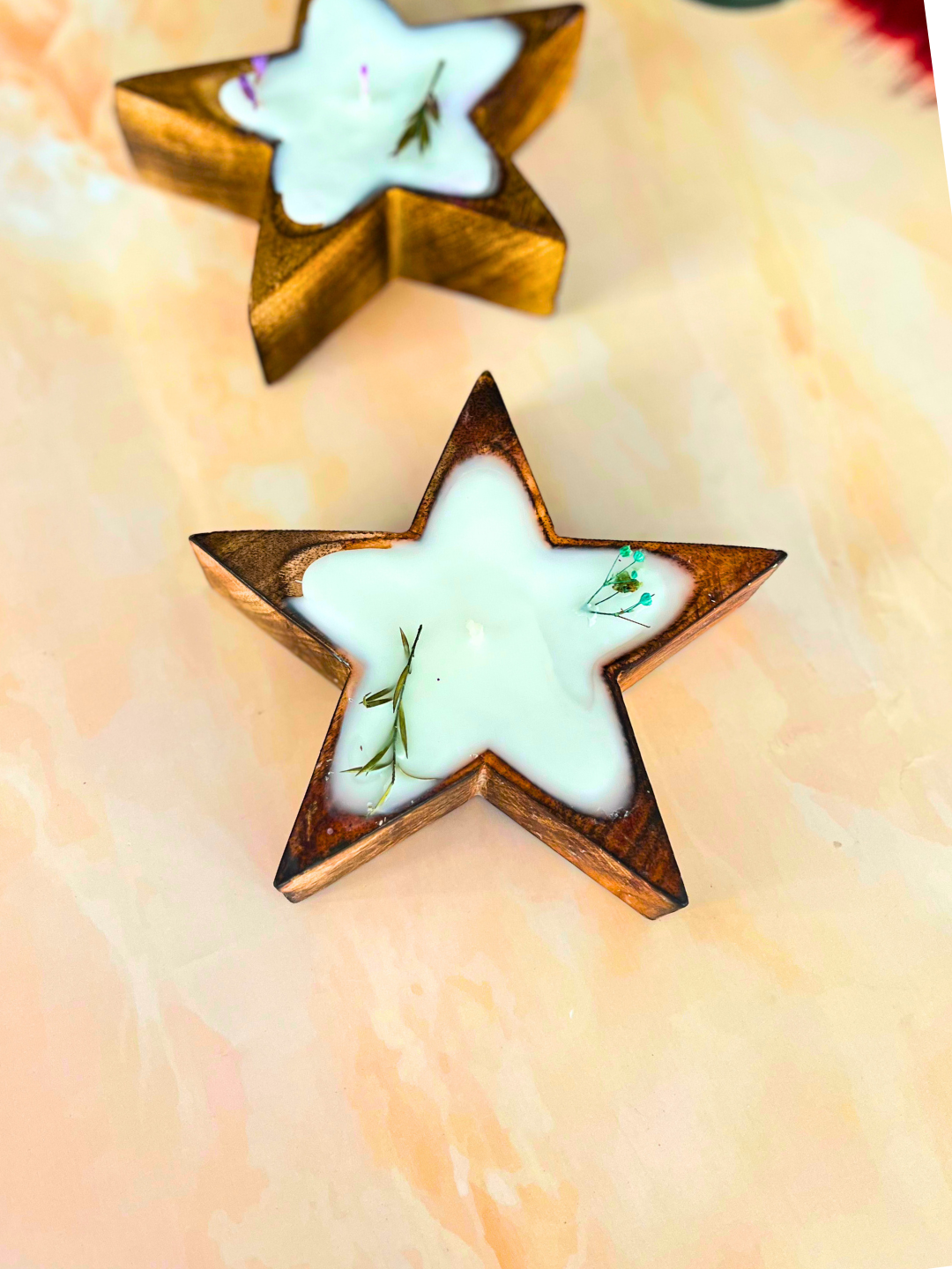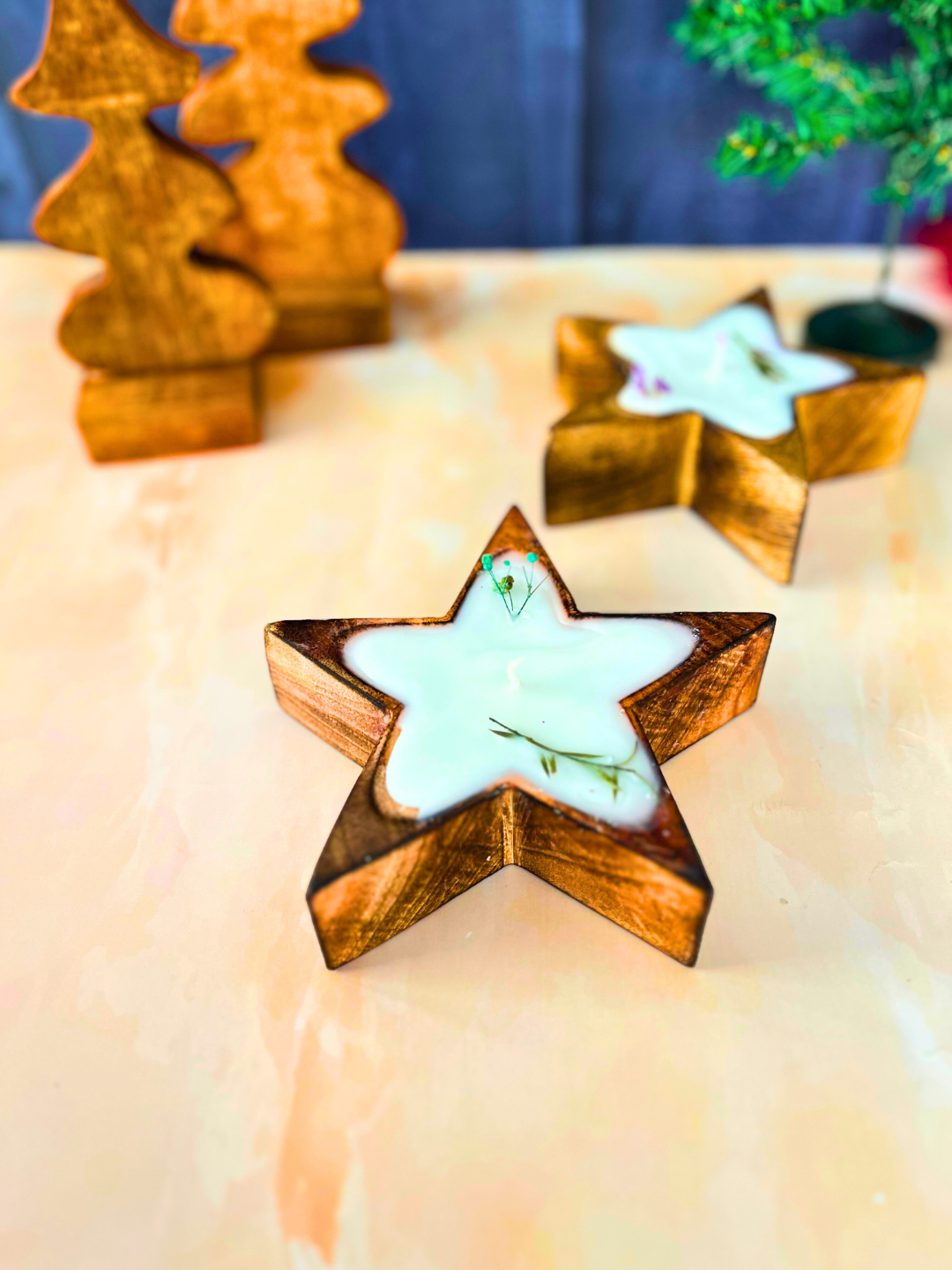 Rustic Wooden Star Candle | Festive Soy Wax Centerpiece (Christmas & New Year)