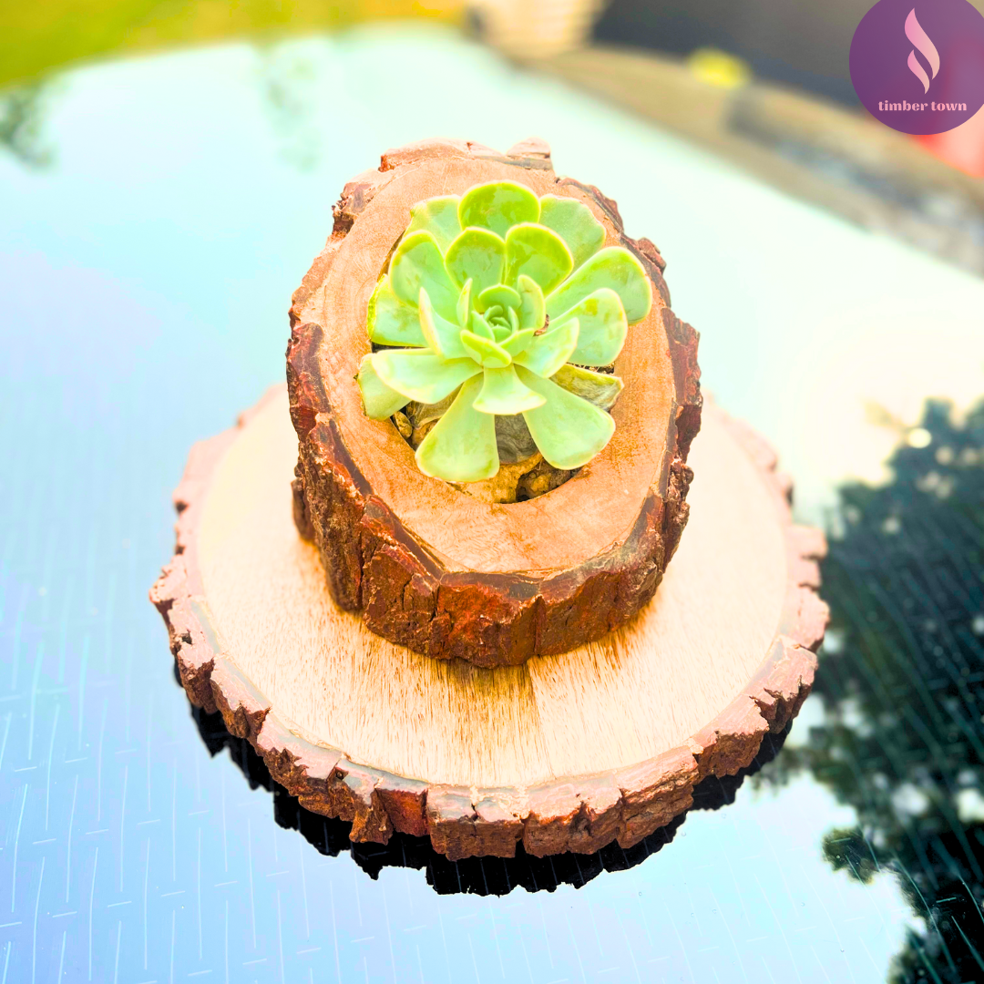 The Wooden bark slight cut planters are made from natural wood giving them a rustic and organic look. This design is different from others as it has a slight slant cut at the top which adds a unique and stylish touch to the planters, making them stand out from traditional rectangular or square ones.