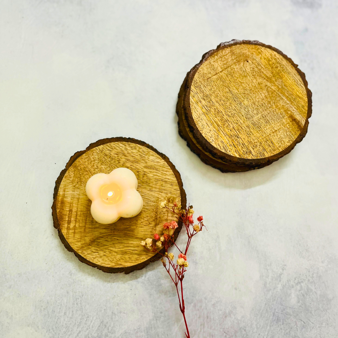 These Rustic Wooden Coasters with Live Edges are a beautiful fusion of nature and functionality. Crafted from natural wood, each coaster preserves the organic shape of the tree, with its live edges left intact, showcasing the raw beauty of the bark and wood grain. No two coasters are exactly alike, making each one a unique piece of craftsmanship. The coasters provide a natural, earthy accent to any space, while protecting your surfaces from scratches and moisture.